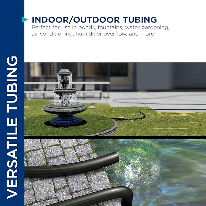 • VERSATILE INDOOR/OUTDOOR TUBING: Perfect for use in ponds, fountains, water gardening, air conditioning, humidifier overflow, and more domestic and industrial uses