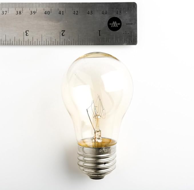 • Our A15 Clear light bulbs are 15 watts each and 2.5" tall by 1.75" wide. They feature a high-quality nickel base and use 130 volts.