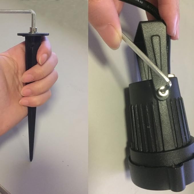 • Easy Installation: Come with US plug power adapter, 90cm/3ft in length, just plug and play; Equipped with a spike for lawn, 2pcs Allen Wrench included for simple assemble