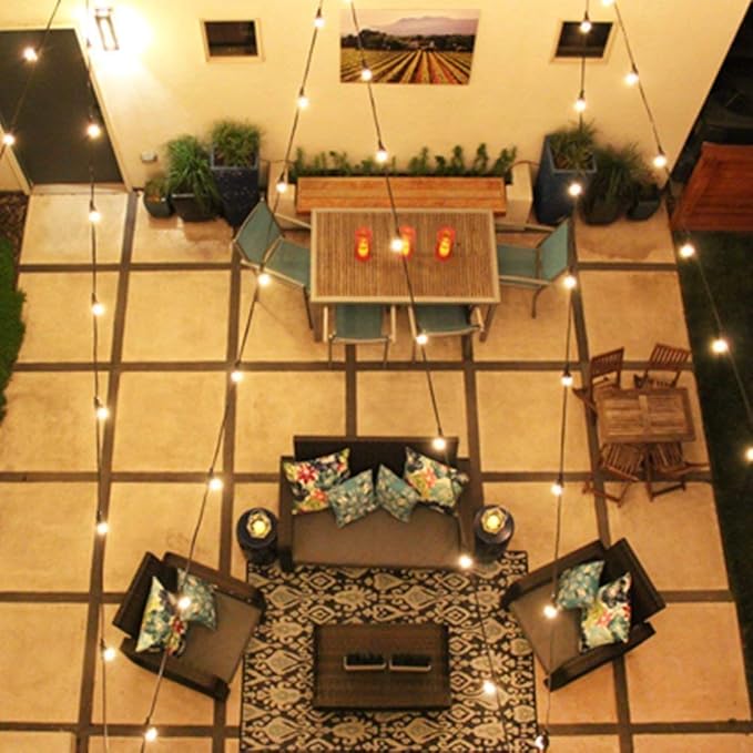 • Outdoor string lights waterproof: UL certified garden lights is built with weatherproof technology, which can withstand extreme temperatures, rain, wind, and damp climates. Commercial grade porchlights perfer for indoor and outdoor use, decorate the market, cafe, bar, city rooftop, restaurant, business festival, etc.