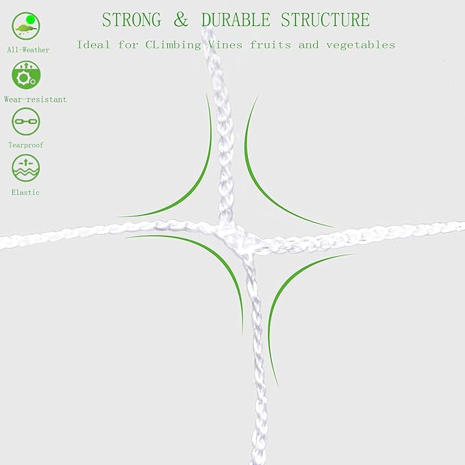 • 1.【QUALITY】Trellis Netting ,White ployester mesh has outstanding durability. Breaking strength supports extremely heavy crop loads.Prevent animals from damaging the plants
