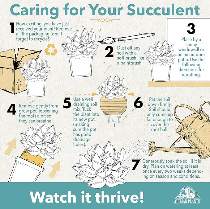• PACKAGING: All plants come with helpful care instructions and are packaged with care at our facility by our succulent shipment specialists