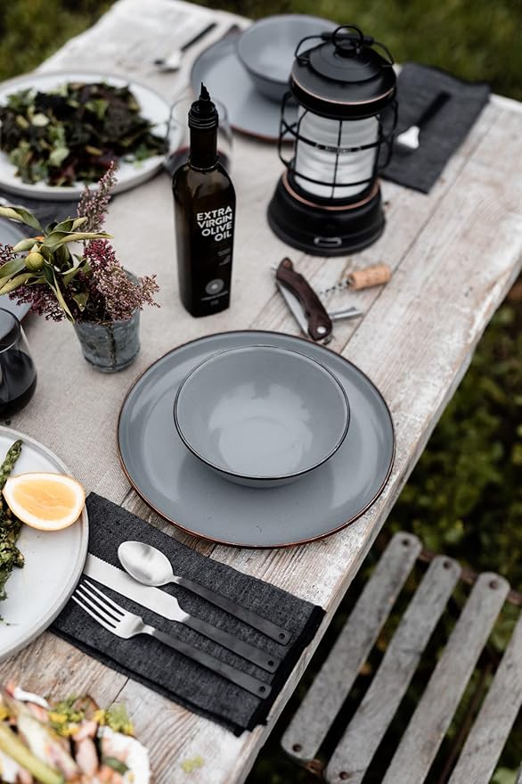 • Complete Camping Cookware Set: This set includes everything you need to enjoy a meal in the great outdoors. It includes forks, spoons, and knives, all the essential dinner utensils, packed in a convenient carrying case