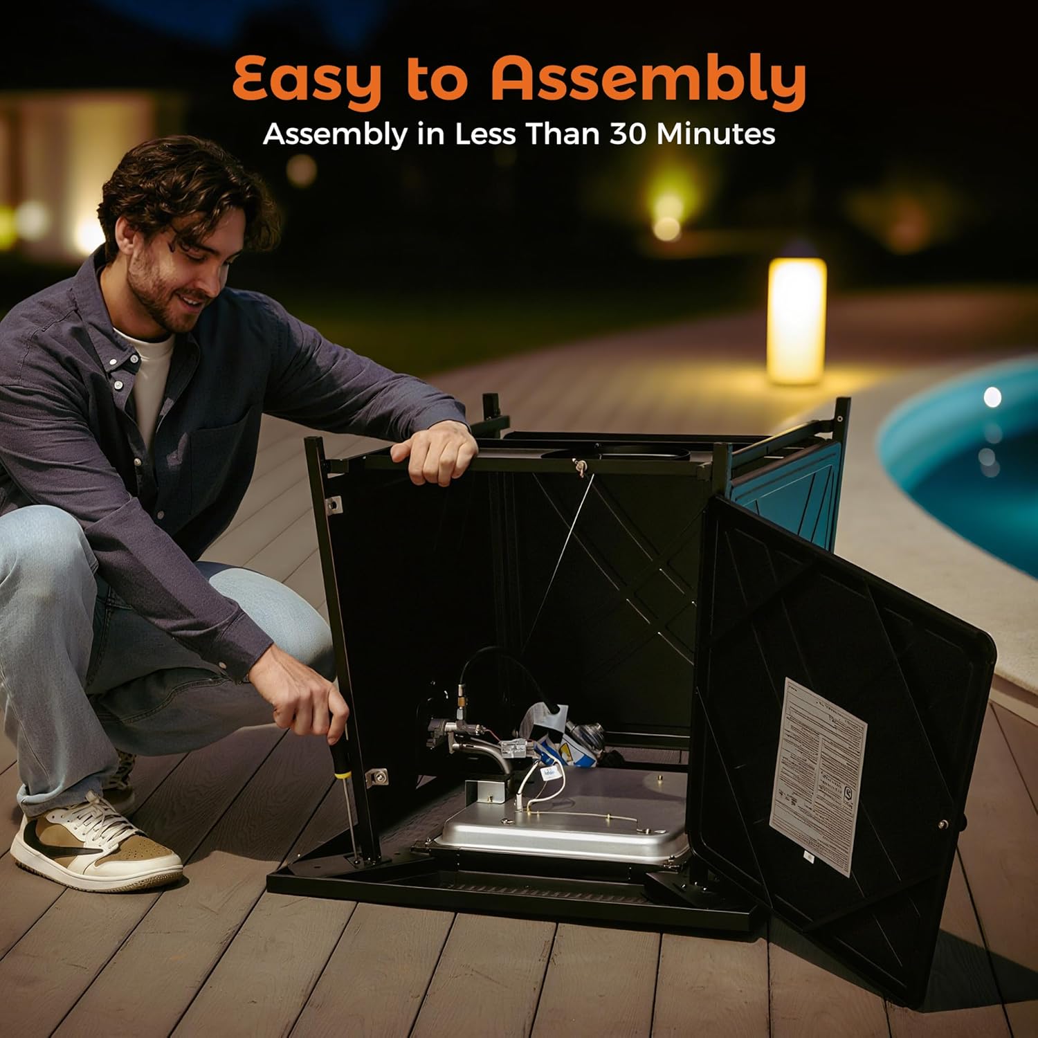 • SAFTY AND GREAT HEAT OUTPUT: Our gas fire pit table is 50,000 BTU heat output gives you enough heat to warm you up on cool morning and nights