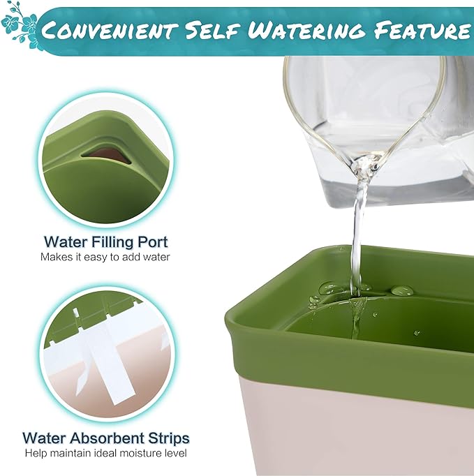 • 3 Pack Indoor/Outdoor Planters - Feature large water reservoirs and strings that help automatically hydrate your plant life to keep it going strong with hands-free support. windowsill herb garden