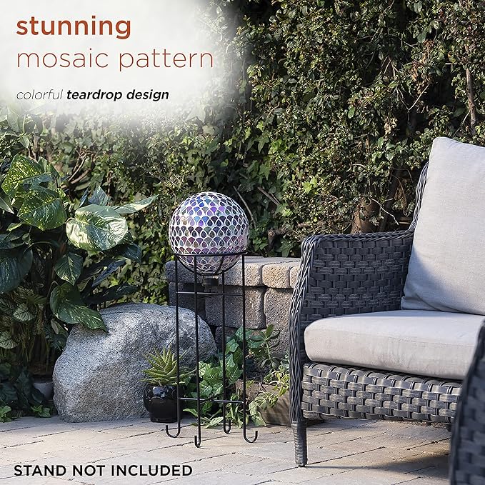 • OUTDOOR GARDEN DÉCOR: Gazing globe is made from multi-colored iridescent glass pieces, and provides a unique and decorative addition to your home's interior or exterior décor with its mosaic design
