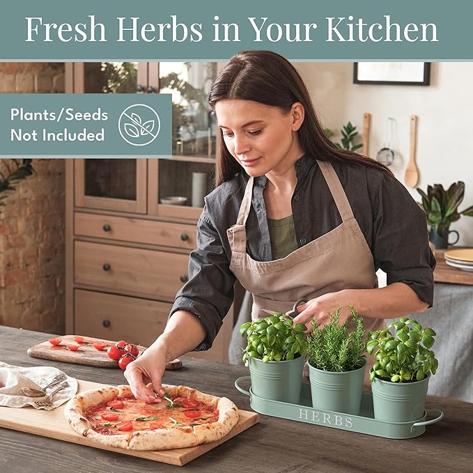 • Indoor herb garden planter with tray - Add greenery to your space with this vintage metal windowsill planter. Herb planters for indoor plants with a farmhouse touch. Place the indoor herb planter on your kitchen counter or display the small herb planter as an apartment window planter.