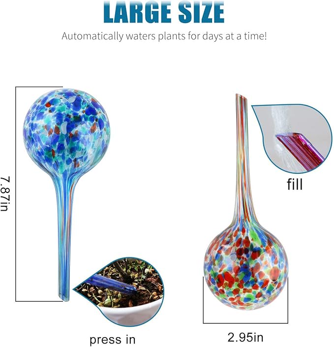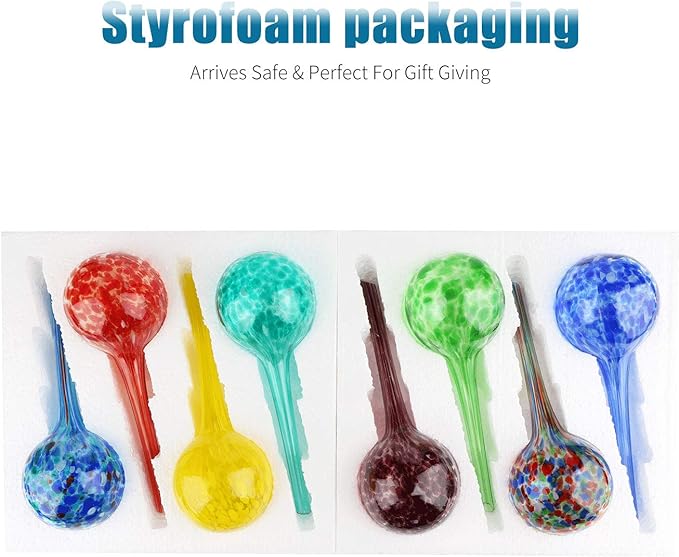 • Grow healthy plants. This set of 4/6/8 decorative glass watering globes are a perfect automatic watering system for your small indoor or outdoor plants. No more over or under watering your plants! Self-watering bulbs slowly release the perfect amount of water needed into the soil to feed flowers, herbs and other plants.