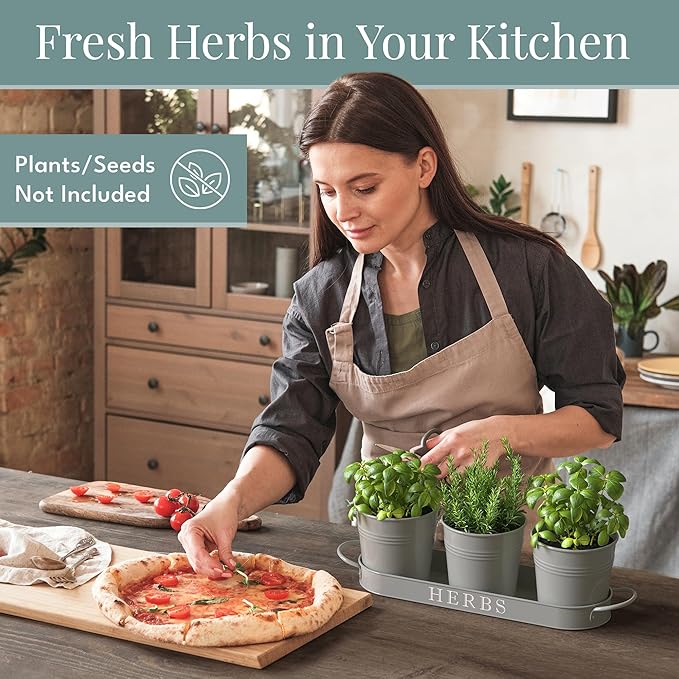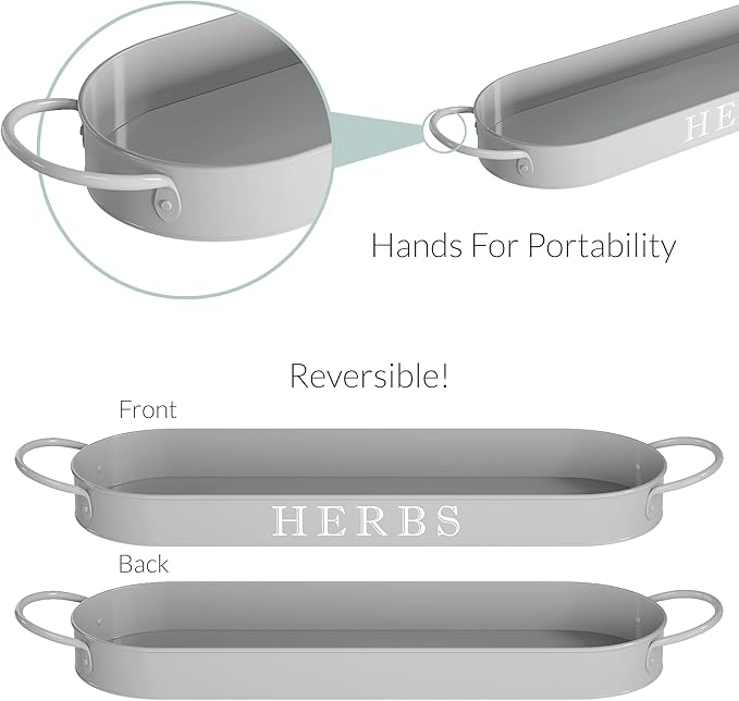 • Indoor Herb Garden Planter with Tray - Add greenery to your space with this vintage metal windowsill planter. Herb planters for indoor plants with a farmhouse touch. Place the indoor herb planter on your kitchen counter or display the small herb planter as an apartment window planter.