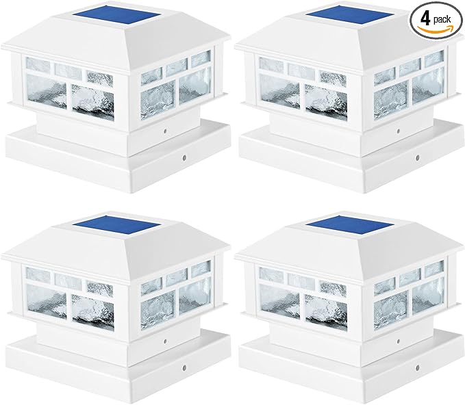 4 Packs Solar Post Cap Lights White Fence Deck Post Light Solar Powered Fit 3.5x3.5 4x4 5x5 Wooden Posts Outdoor Waterproof