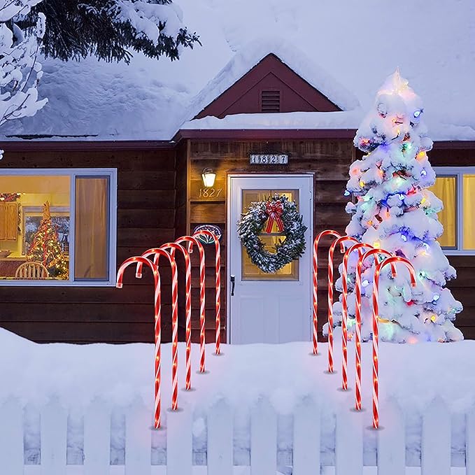 • 【What You Get】You will get a package of 10 pack 26'' candy cane lights, 10 stakes , 4 spare bulbs and 4 fuses. An detailed installation instruction ,finish the DIY installation only takes you a few minutes.
