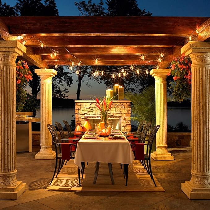 • Vintage C7 Christmas Clear String Lights: Outdoor clear led C7 string lights glow a natural warm, create a vintage effect or antique ambiance & romantic atmosphere. C7 christmas string lights outdoor perfect for outside christmas garden patio yard cafe tent porch deck party backyard decoration and lighting