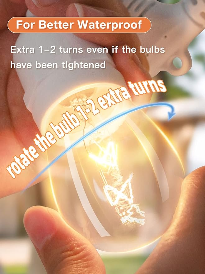 • [Weatherproof & Heavy-duty] This outdoor string lights are ETL listed weatherproof commercial. The insulation material can protect the strand from hot winter, sun, wind, rain, snow and damp. Flexible heavy-duty cord withstands the wear of indoor and outdoor use