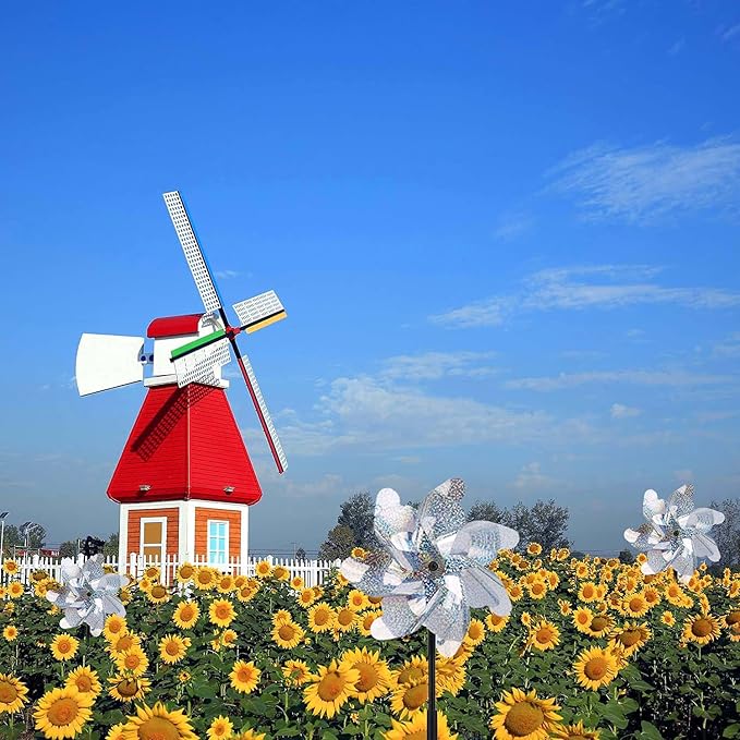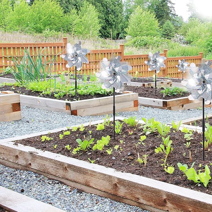• Garden Spinner : It is easy to use and sturdy enough for any weather. The pinwheels will rotate in the breeze and hold up in the strong wind