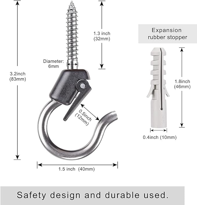 • 【Safety Buckle Design】A movable buckle is installed on the ordinary screw, and the hanging items will not fall out, which increases the safety performance of the product.