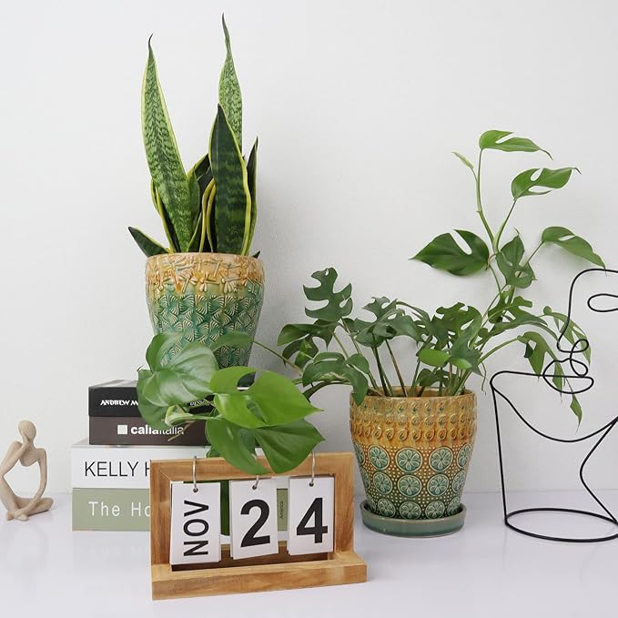6 Inch Ceramic Planter with Drainage Hole and Saucer for Plants, Indoor-Outdoor Large Round Succulent Orchid Flower Pot, Set of 2