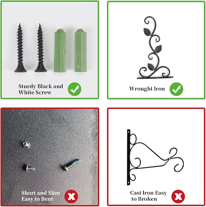 • STABLE & ROBUST: Our metal plant brackets are made of heavy duty and rust resistant steel construction. Sturdy construction for long term use.Bring your heaviest pots and baskets.