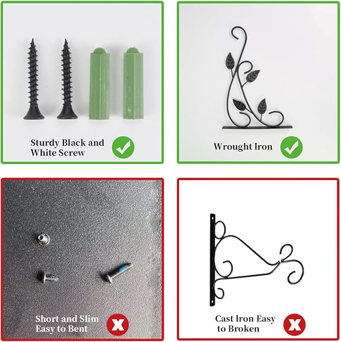 • STABLE & ROBUST: Our metal plant brackets are made of heavy duty and rust resistant steel construction. Sturdy construction for long term use.Bring your heaviest pots and baskets.