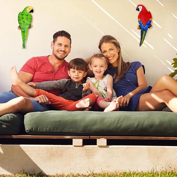2 Pieces Parrot Decor Outdoor Tiki Bar Decorations Large Realistic Parrot Statues for Outside Lifelike Bird Sculptures Garden Patio Yard Lawn Figurines for Tropical Animal Tree Wall (Green, Red)