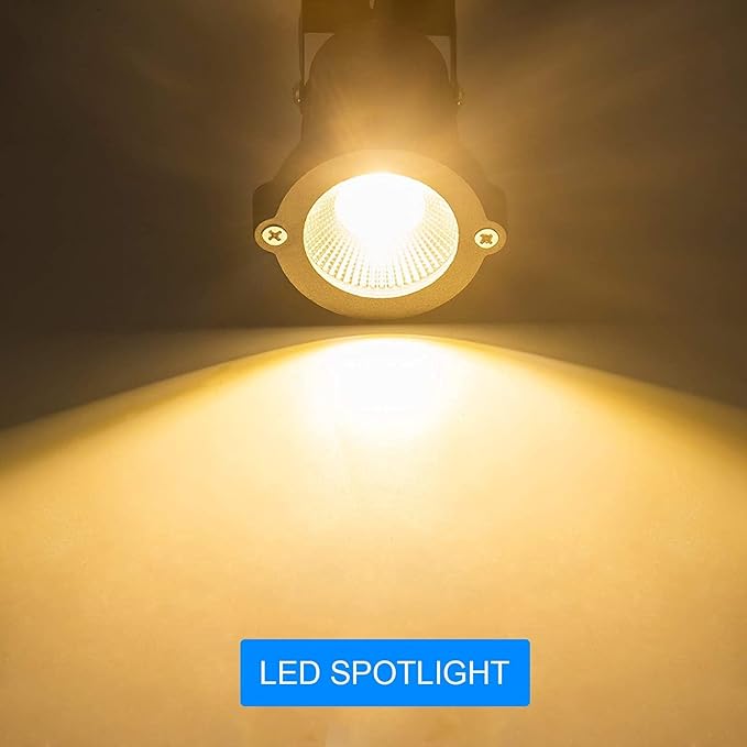 • 【Roatable & Flexible Angle Adjustment】60° Beam Angle, 270 degree adjustable head offers best lights for the Celling,walls, trees, flag,fences;widely used for garden, yard patio pathway outdoor decoration,also widely used in living room, dining room, corridor, painting exhibition, background wall and hotel lighting, etc.