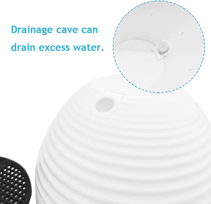 • Function: The water tray in the round hanging basket holds soil above the bottom of the pot, allowing the soil to absorb water as needed. The drainage cave in each pot allows excess water to drain.