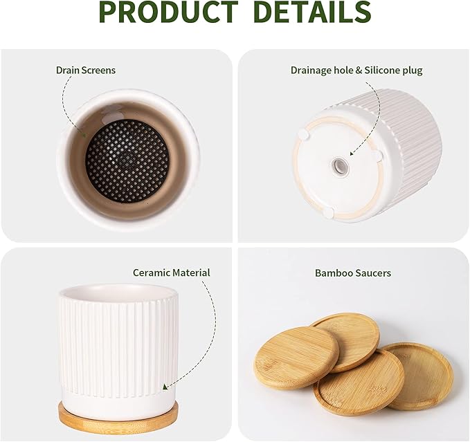 • Modern Design Planters: White plant pots surface with elegant stripes design full of artistic sense. Simple style indoor plant pots will be placed in various suitable scenes, such as courtyards, balconies, and other places that need to be decorated.
