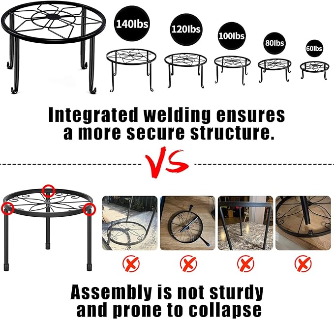 • [Metal material] This plant stand is welded with thick iron wire to make the stand hard enough, not easy to bend and cut, and not easy to deform. It is very suitable for heavy flower pots or other flower pots. Our metal flower pot holders can be used to support extra-large flower pots.