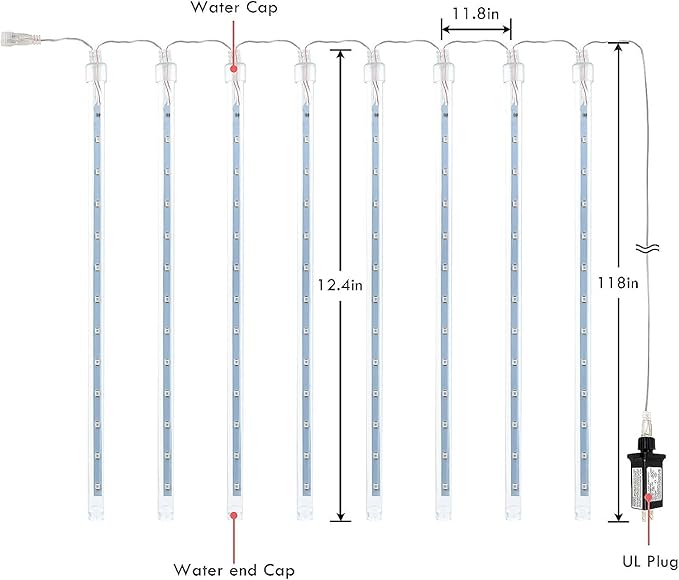 • 2-Pack 16 Tubes 384 LEDs Extendable Meteor Shower Lights for Christmas Decor: Super Bright with new upgraded LED bulbs, each bulb turn on and off one by one, like a realistic meteor shower. It is time to add a festive looking to your family!