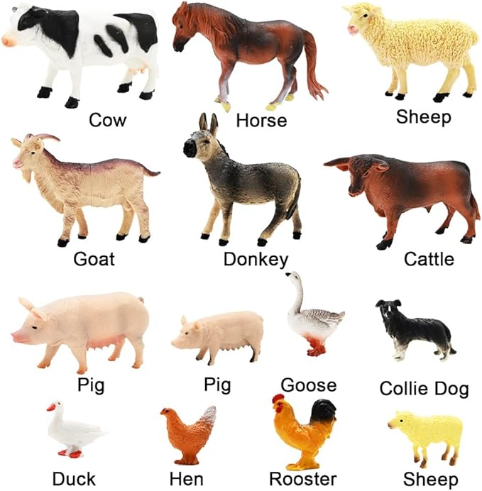 • 💗 SAFE & REALISTIC FARM FIGURES: 15 Pcs unique farm figurines with vibrant colors, 8pcs 4-5 inch big farm figures and 7pcs 2-2.5 inch mini farm figures, which are made of high quality durable ABS materials which is Eco-Friendly, plus hand-painted make them more realistic. KIMICARE's #1 priority is child safety.