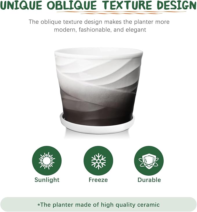 • 【Decorate Plants and Homes 】The combination of traditional craftsmanship and fashion design creates the unique style of this ceramic plant pots. Using only simple modern black and white colors, simple lines can decorate your space.