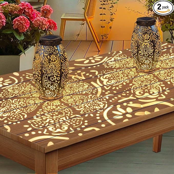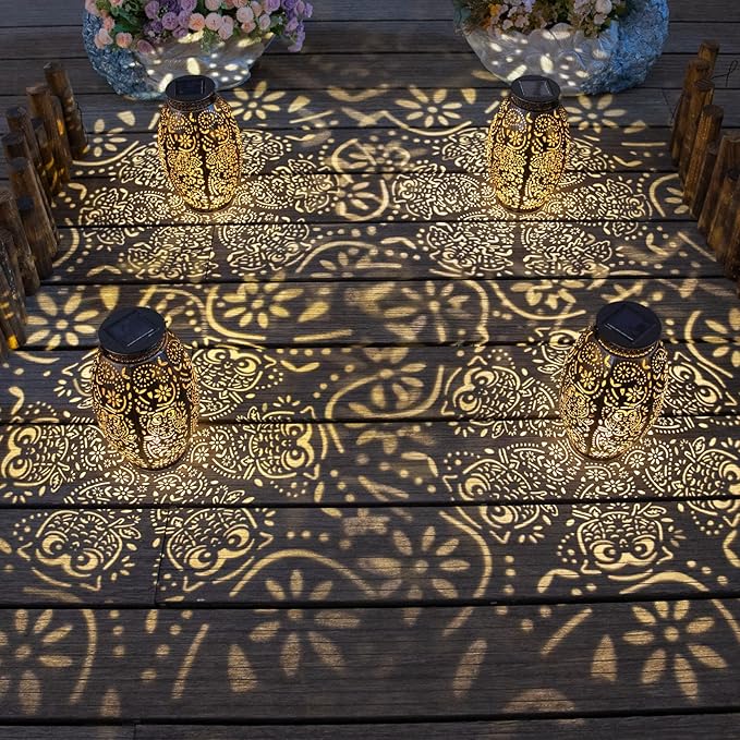 • Bright solar outdoor lantern: 10Lumens LED emit warm white glow at night and display owl flower pattern when you place it on table/chair/steps or hang them near wall/ground. The warm glow create peaceful and romantic ambience for your patio, balcony, garden, yard and walkway.