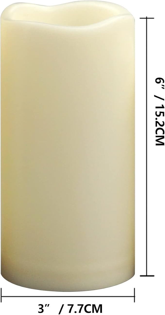 • Set: 4 Pack 3x6 inch Flameless Candles. Appearance Colour: Cream White. Each candle requires 2 AA batteries(Not Included). Attention: Candles have timer function, Don’t have Remote Control.