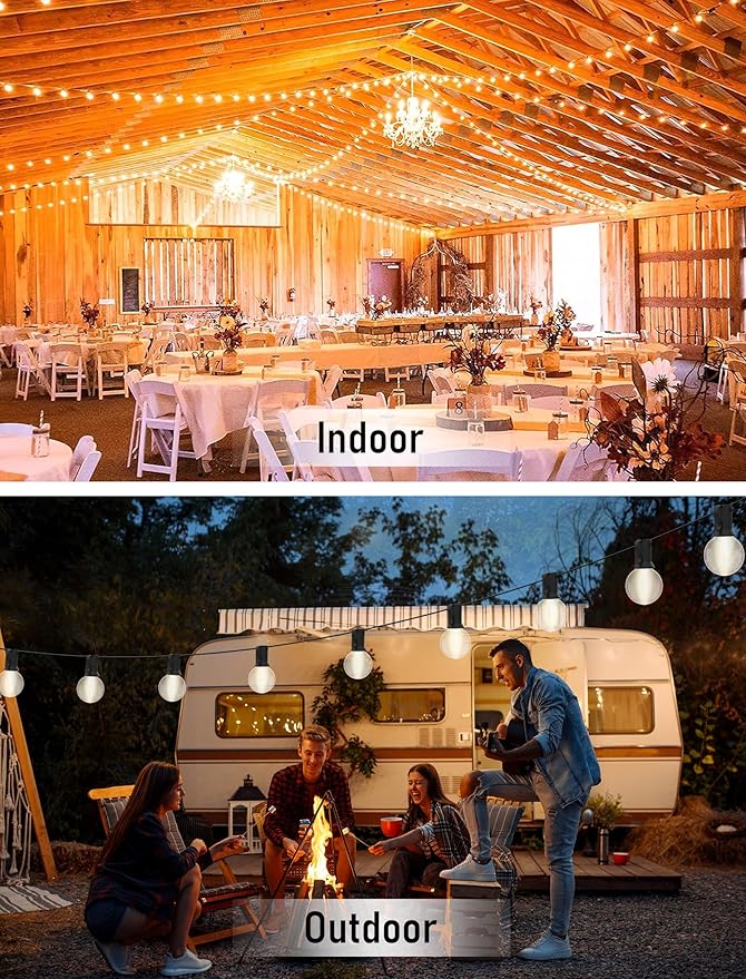 • 25 feet frosted globe string lights with 27 frosted white G40 Edison bulbs, end to end connectable.The frosted white light bulb creates a hazy beauty, which can create a comfortable visual experience and bring a new experience different from the past. Light bulbs have G40 candelabra (E12) socket base, UL listed