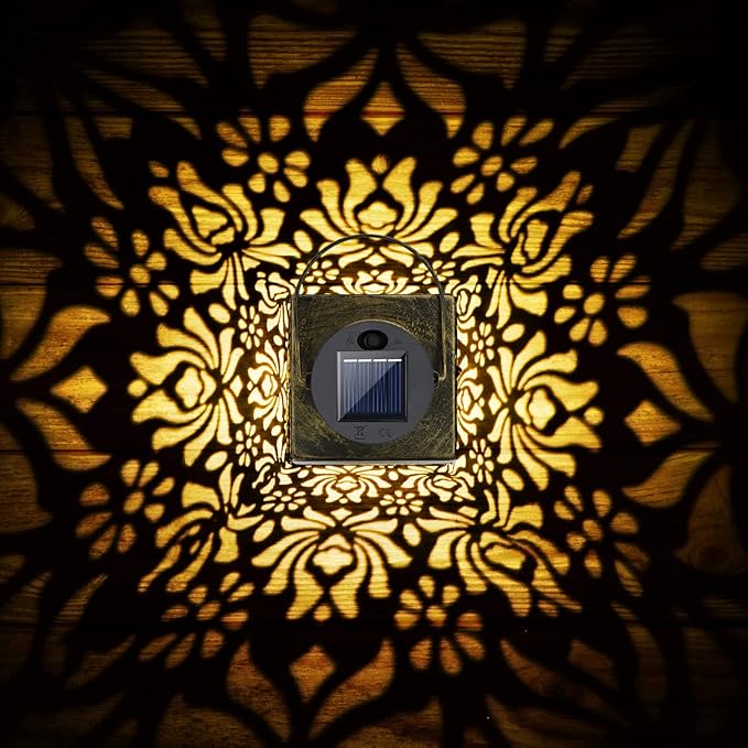 • Versatile & Easy to Use - The Solar lanterns recharge 6-8 hours in the day and working 8-10 hours automatically at night. These solar garden lights create the beautiful flower patterns for ground, table and blank wall. The outdoor solar lights are light weight and easy to hang on Shepherd hook or tree. You can use the hanging solar lights anywhere, even for inside when the electricity went out.