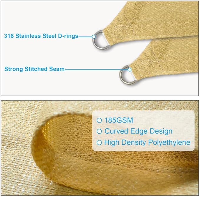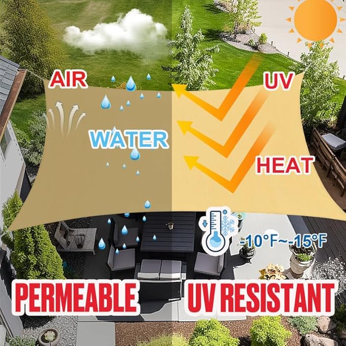 • Premium UV Protection – 185GSM HDPE Fabric: Blocks 95%–98% of harmful UV rays while allowing air to flow freely, keeping your outdoor space cool and safe for relaxing, dining, or playing.