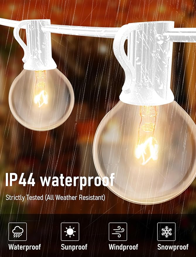 • ROMANTIC ATMOSPHERE: Outdoor white string lights is suitable for indoor/outdoor lighting applications. Fits great for patio, backyard, deck, bistro, café, pergola, garden, market, wedding party, Christmas decoration and many other occasions or events