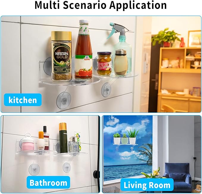 • EASY TO ASSEMBLE : After cleaning the surface with alcohol or a clean towel, the suction cup shelf can firmly adhere to glass, mirrors, and smooth tiles. It's a great suction cup shelf saving wall organizer