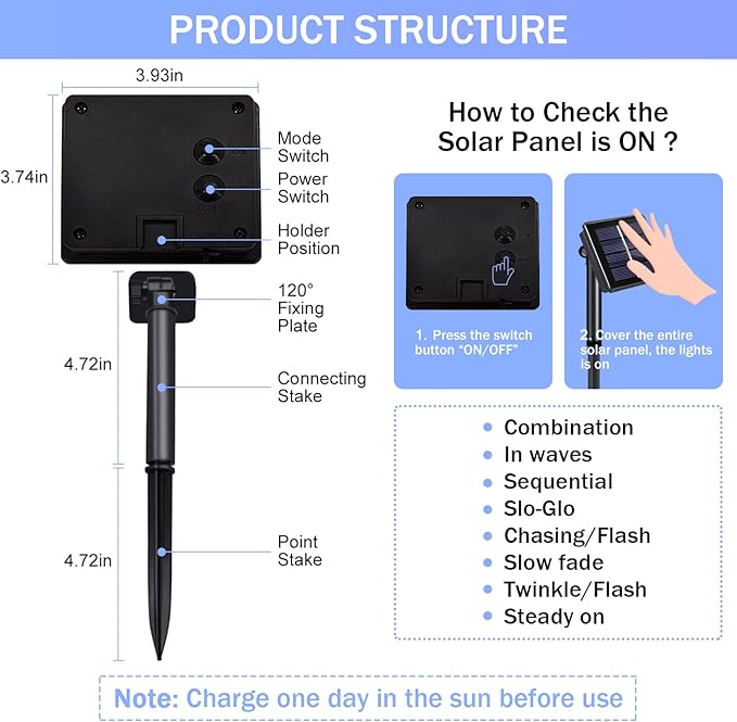 - 【8 Flashing Modes to Decorate Your Life】Are you still bothered by the different decorative atmospheres? Our solar string lights can fully satisfy your needs! 8 different light modes bring different enjoyment. We have the favorite firefly mode, as well as a more dynamic wave mode, and when you hold a family party, the twinkle mode will be your best choice! In addition, we have five different modes as chase and constant light, etc. Different flashing mode, different mood, the same enjoyment