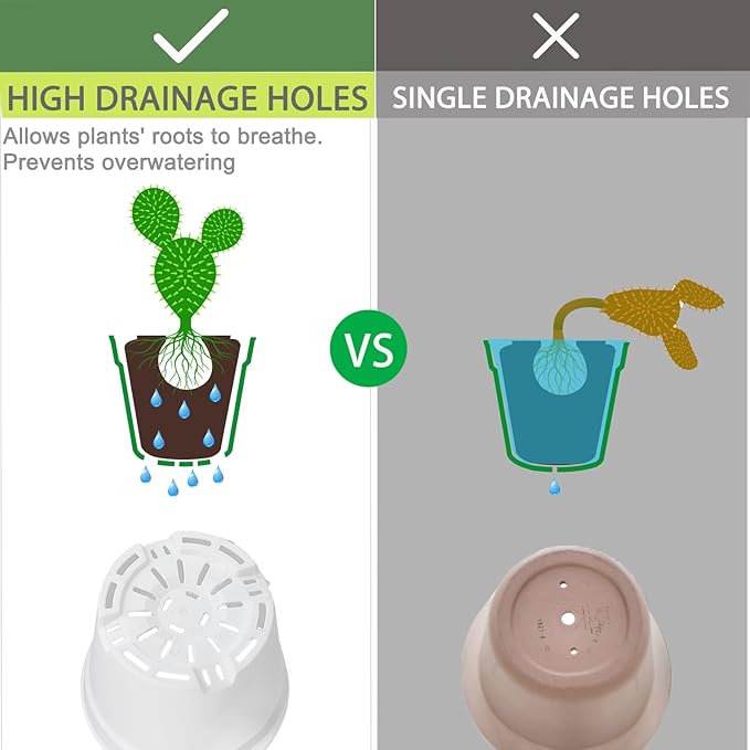 • [PP material with Matte Finishing Exterior] There 4 inch small plant pots are made of PP Matte materials, safe and non-toxic. With good quality and strong flexibility, it will not be damaged if accidental fall or long-term sun and rain. Lightweight and Safe around kids or animals.