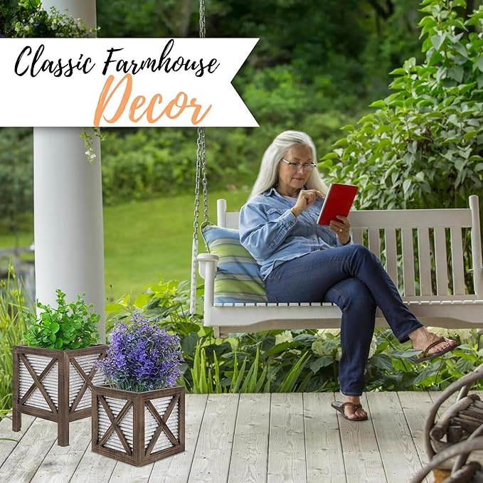 • Accommodate Large Plant Pots - These tall planters for front porch are perfect, generously sized at 12” x 12” x 15.75” and 12" x 12” x 12”, allowing you to showcase tall and large plants effortlessly. Use this porch planters outdoor set of 2 together or separately to enhance any room with farmhouse charm