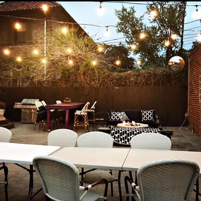 • Dimmable: Clear plastic bulbs provide a warm white glow. Dimmer compatible which would be perfect decoration lights for your garden, backyard and balcony
