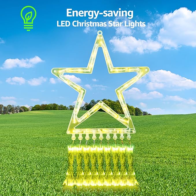 • Safety and Energy Efficiency: To ensure absolute safety, the star Christmas lights have been thoroughly tested and fully complied with the UL certification standard. Furthermore, the product uses a new type of energy-saving LED lamp beads, characterized by high brightness and low energy consumption, allowing 80% energy savings.