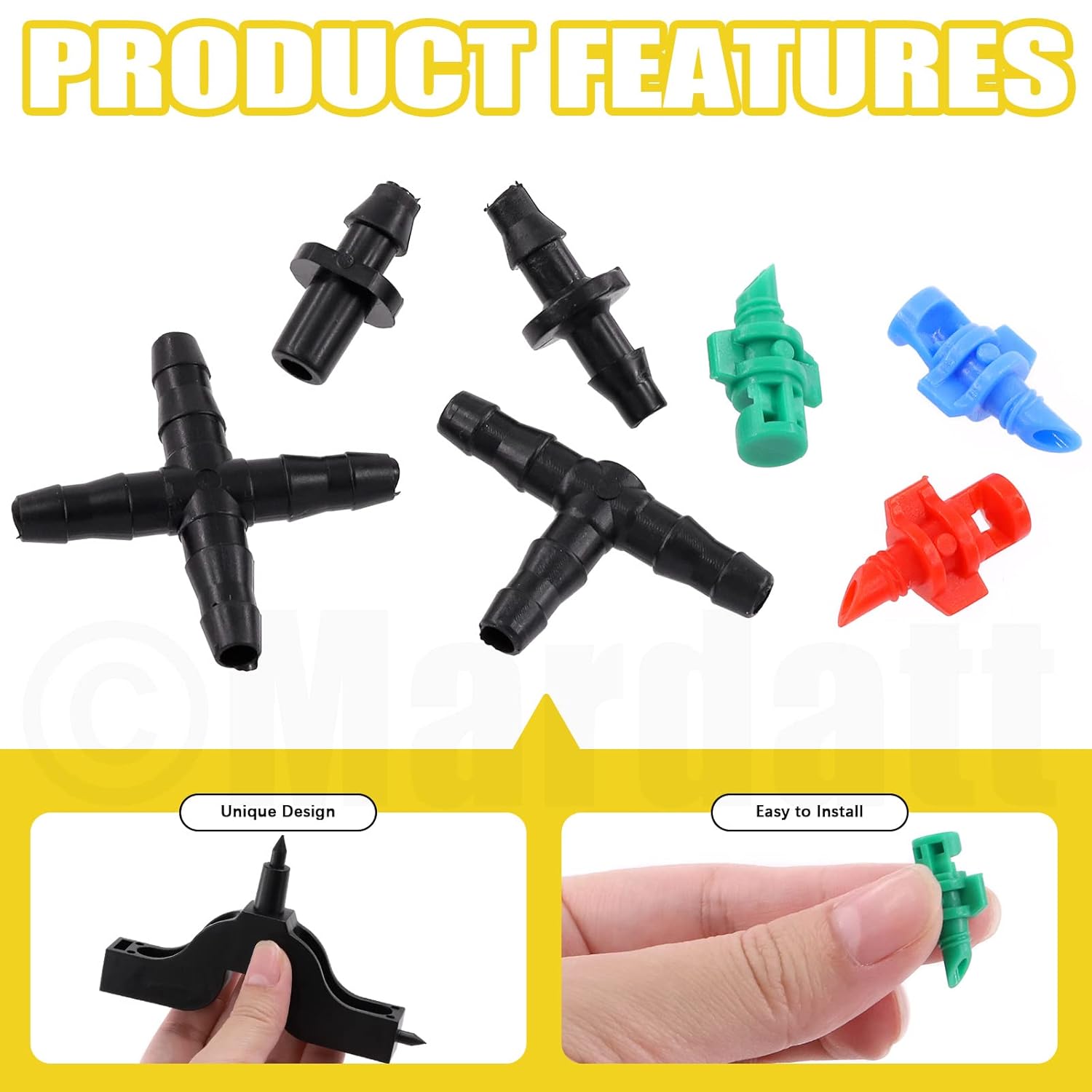 • 〖Various Irrigation Fittings〗Featured with multiple types of irrigation fitting: single barbs and straight barbed, tee, 4-way coupling, helping create maintenance-free irrigation systems and guiding the water precisely to where you need it. Usually can be used to connect 1/4 inch drip irrigation pipes.