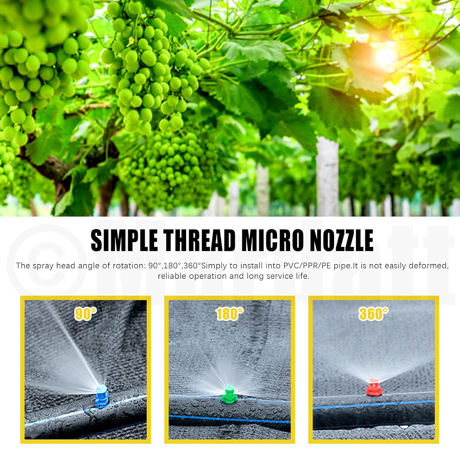 152Pcs Drip Irrigation Barbed Connectors Fittings Kit for 1/4" Tubing Includes 90/180/360 Angle Atomizing Sprinkler Sprayer and Barbed Connector for Agriculture Hydroponic Garden Lawn