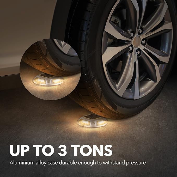 • 【IP68 WATERPROOF & SUPER STURDY】With an IP68 waterproof design and a tightly sealed battery compartment, these solar lights can resist any terrible weather, like a rainstorm, or daily heat. High-quality aluminum alloy shell effectively keeps these outdoor solar LED deck Lights from rusting and can withstand up to 3 tons of weight, no need to worry about automobile and kids stepping on.