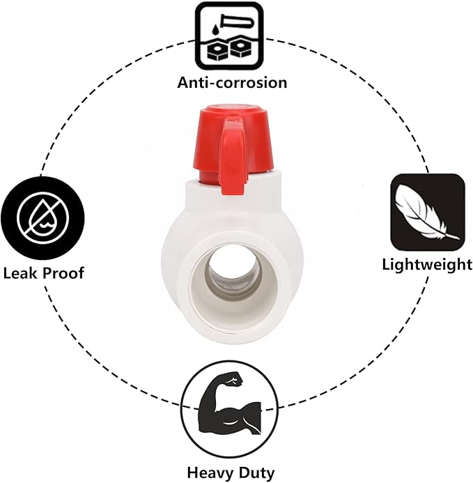 • 【Material】6pcs Heavy Duty 1/2 Inch PVC Ball Valve made of high-quality PVC, high-impact strength, resistant to frost and corrosion, long service life.