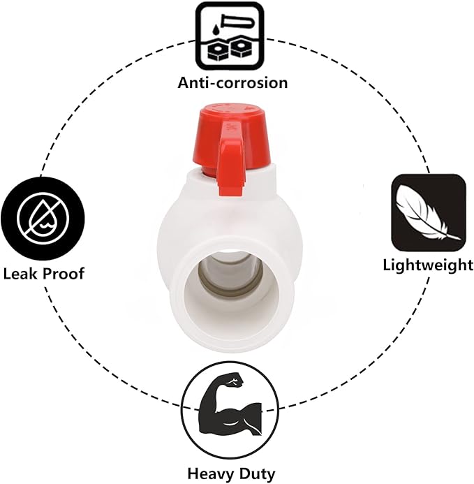 • 【Material】6pcs Heavy Duty 3/4 Inch PVC Ball Valve made of high-quality PVC, high-impact strength, resistant to frost and corrosion, long service life.