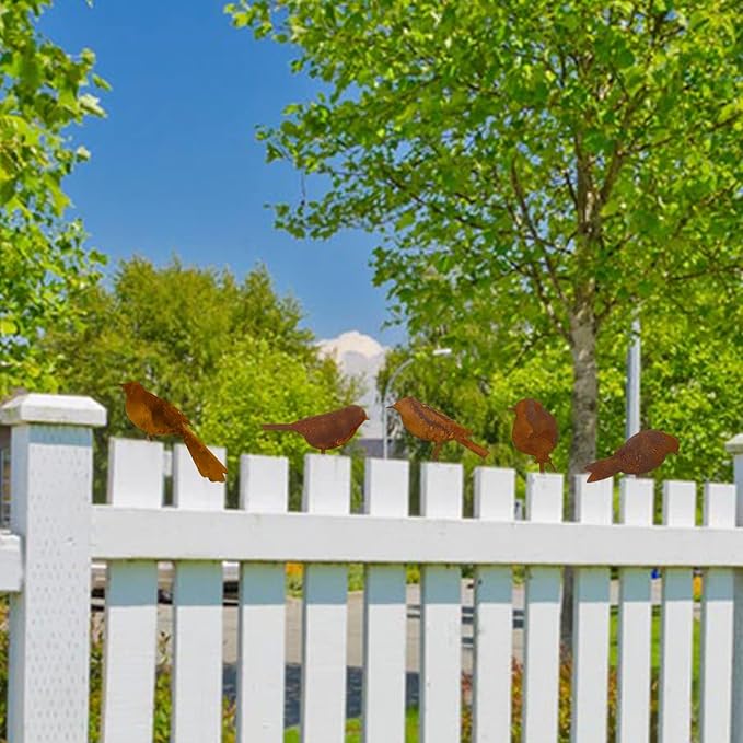 • Rusty Metal Birds: There are 5 metal birds. Handmade in steel from an original design and hand-rusted.
