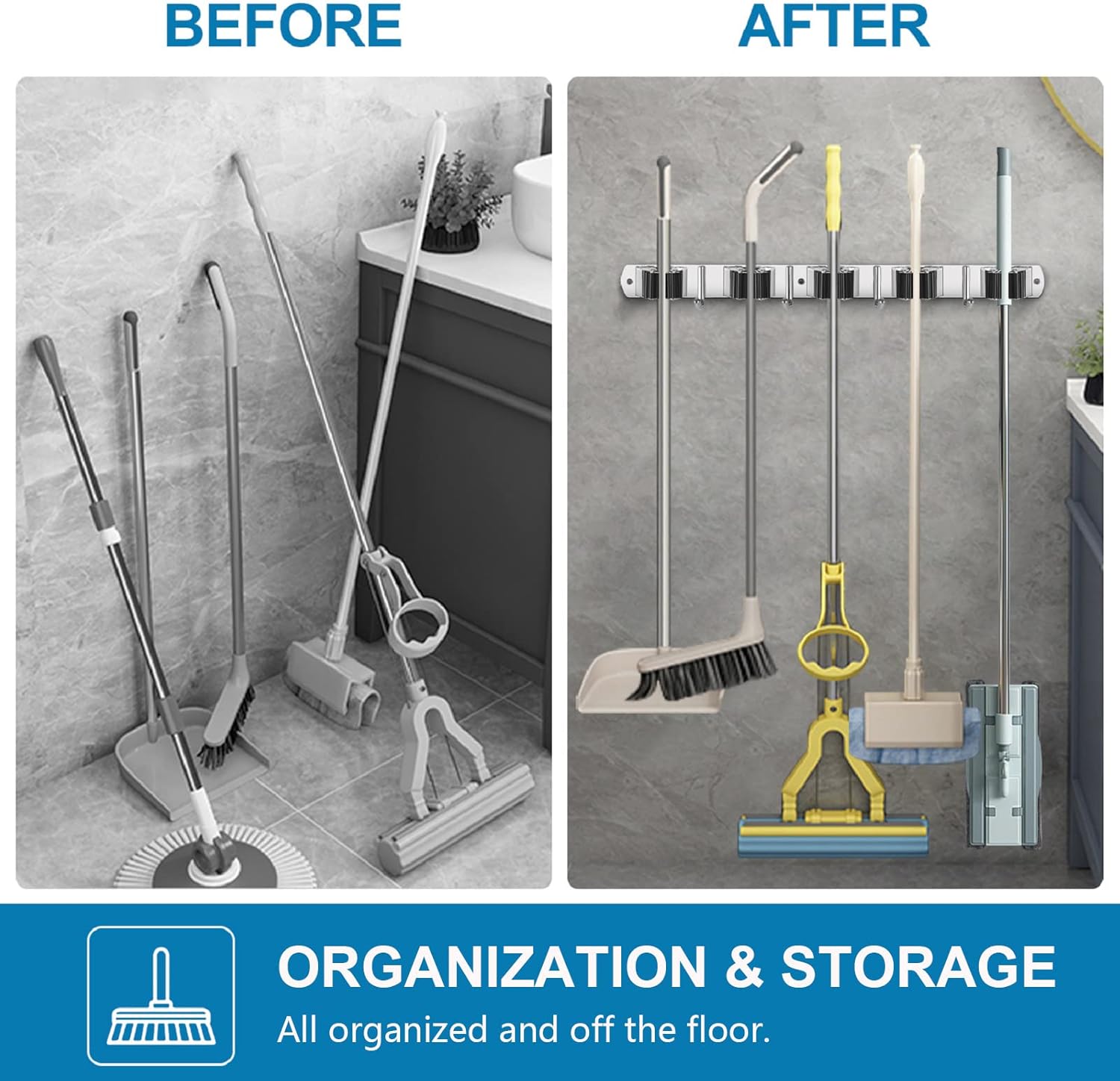 • VERSATILE DESIGN: You can easily organzier your home, such as laundry room, kitchen, closet, garage, pantry, basement. This garage organization also works garden or a shed. You can easy access your broom, mop, swifter, dust pan, small vacuum, rakes, shovels and more