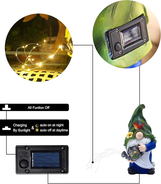 • 【Eco-friendly Solar Light】Please open the button on the back of the statue before use and place it in full sunlight to ensure sufficient sunlight. Comes with rechargeable 1. 2V AAA 600mAH NiMH battery, charges for 6-8H during the day and automatically lights up at night, runs for up to 16H.